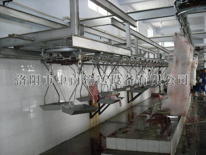 本檢驗(yàn)線又稱衛(wèi)生檢驗(yàn)線。解剖的副產(chǎn)品裝在相對(duì)應(yīng)的檢驗(yàn)盤內(nèi),通過胴體加工輸送線與該同步檢驗(yàn)線的同步運(yùn)行,以達(dá)到同步衛(wèi)生檢驗(yàn)的目的。
