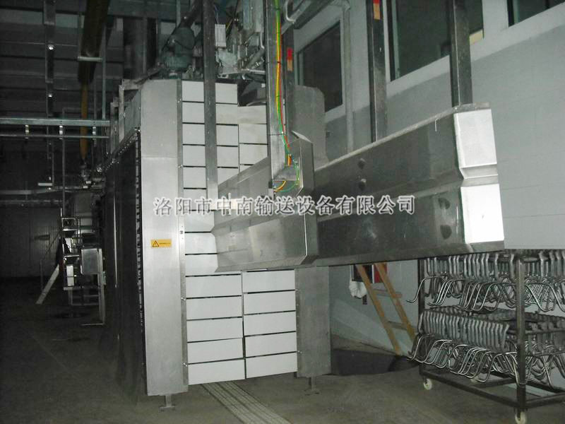 本機(jī)對懸掛輸送線上傳送運(yùn)行中的毛豬,進(jìn)行機(jī)械刷洗。該機(jī)采用對稱直立滾筒,,外接橡膠條,以及沖淋噴水管,對豬體進(jìn)行洗刷。本機(jī)外型結(jié)構(gòu)簡潔,使用維護(hù)方便,是大中小型肉類加工廠選擇的設(shè)備。